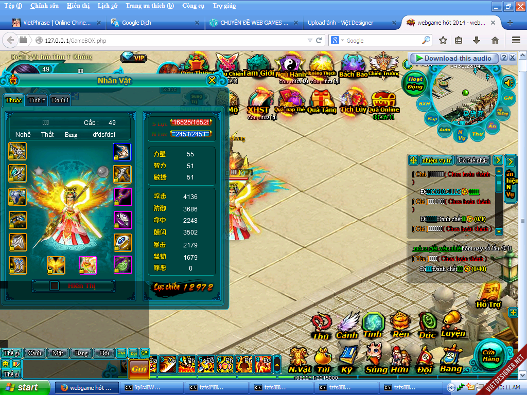 3.Vào 127.0.0.1 để đăng kí và vào game